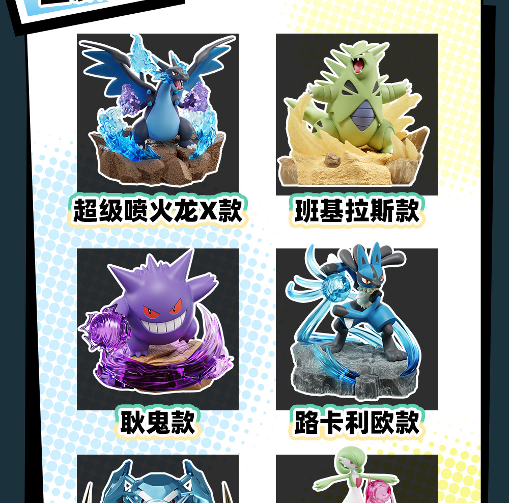 【 常規款 / 共 6 款 】 ☆ 超級噴火龍X ☆ 班基拉斯 ☆ 耿鬼 ☆ 路卡利歐 ☆ 巨金怪 ☆ 沙奈朵 ※因此款商品體積較大,一中盒限宅配寄送 ❚ 商品類型:盒玩 ❚ 商品尺寸:高約14~18cm ❚ 商品材質:PVC ❚ 聯繫資訊 Facebook|心痛扭蛋機 Instagram|heartbreaker_toys